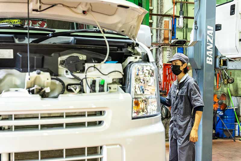 新車・中古車の販売はもとより、車両や重機械の修理、車検も行います。